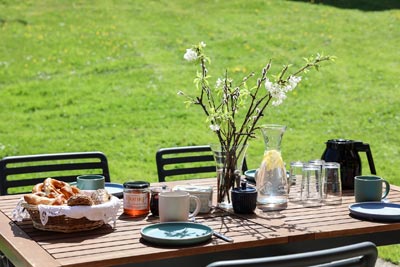 Die daran anschließende große Terrasse mit Morgensonne und einen einmaligen Blick auf unseren Hausberg den Zinken lädt zum Verweilen in der Natur ein.